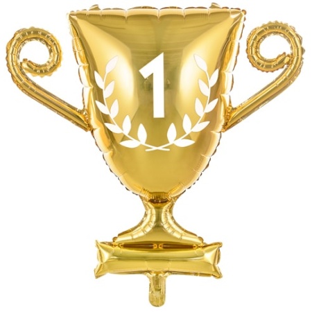 Fóliový balón víťazný pohár v zlatej farbe. Balón je vhodný na fúkanie vzduchom aj héliom. Rozmery cca 64 x 61 cm. Balenie obsahuje 1 ks.