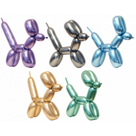 Modelovacie balóny chrómové, mix farieb. Balóny sú vhodné na fúkanie vzduchom aj héliom. Rozmery 5 x 152 cm (HxD). Typ 260. Balenie obsahuje 50 ks.