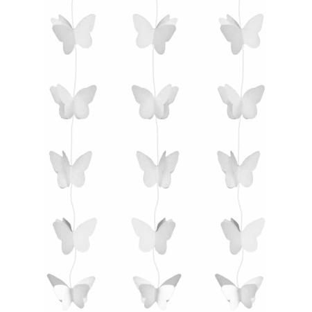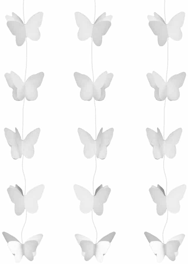 Papierová girlanda biele motýle. Šírka motýla 75 mm. Dĺžka girlandy 200 cm.
