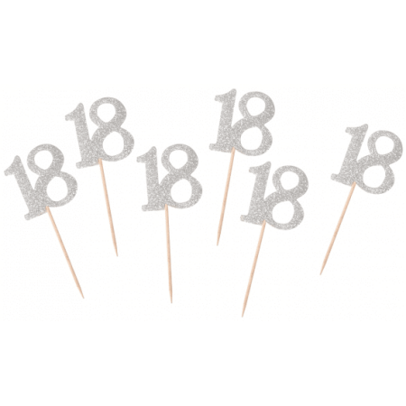Napichovadlo 18. narodeniny strieborné s trblietkami, 6ks