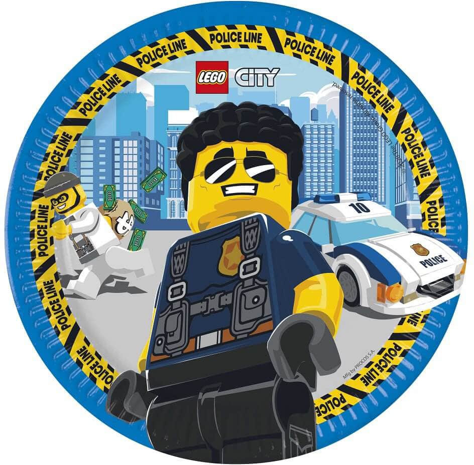 Papierové taniere Lego City. Priemer taniera 23 cm. Balenie obsahuje 8 ks.